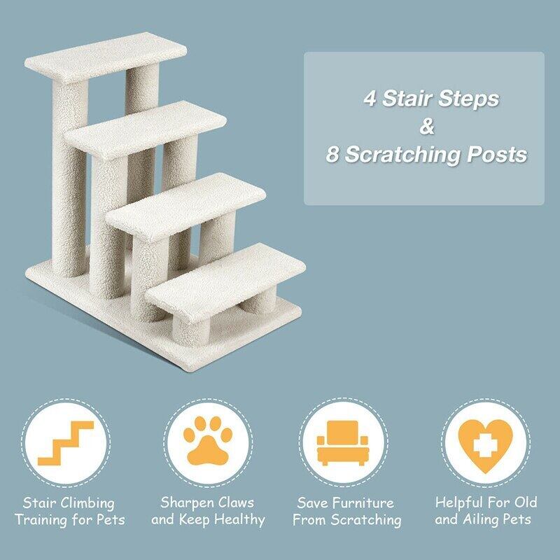 24 インチ 4 ステップ ペット階段カーペット敷きはしごスロープ スクラッチ ポスト猫ツリー クライマー カーペット敷きはしごスロープ スクラッチ ポスト