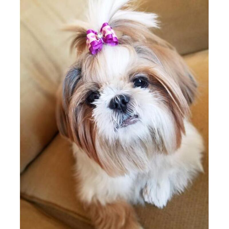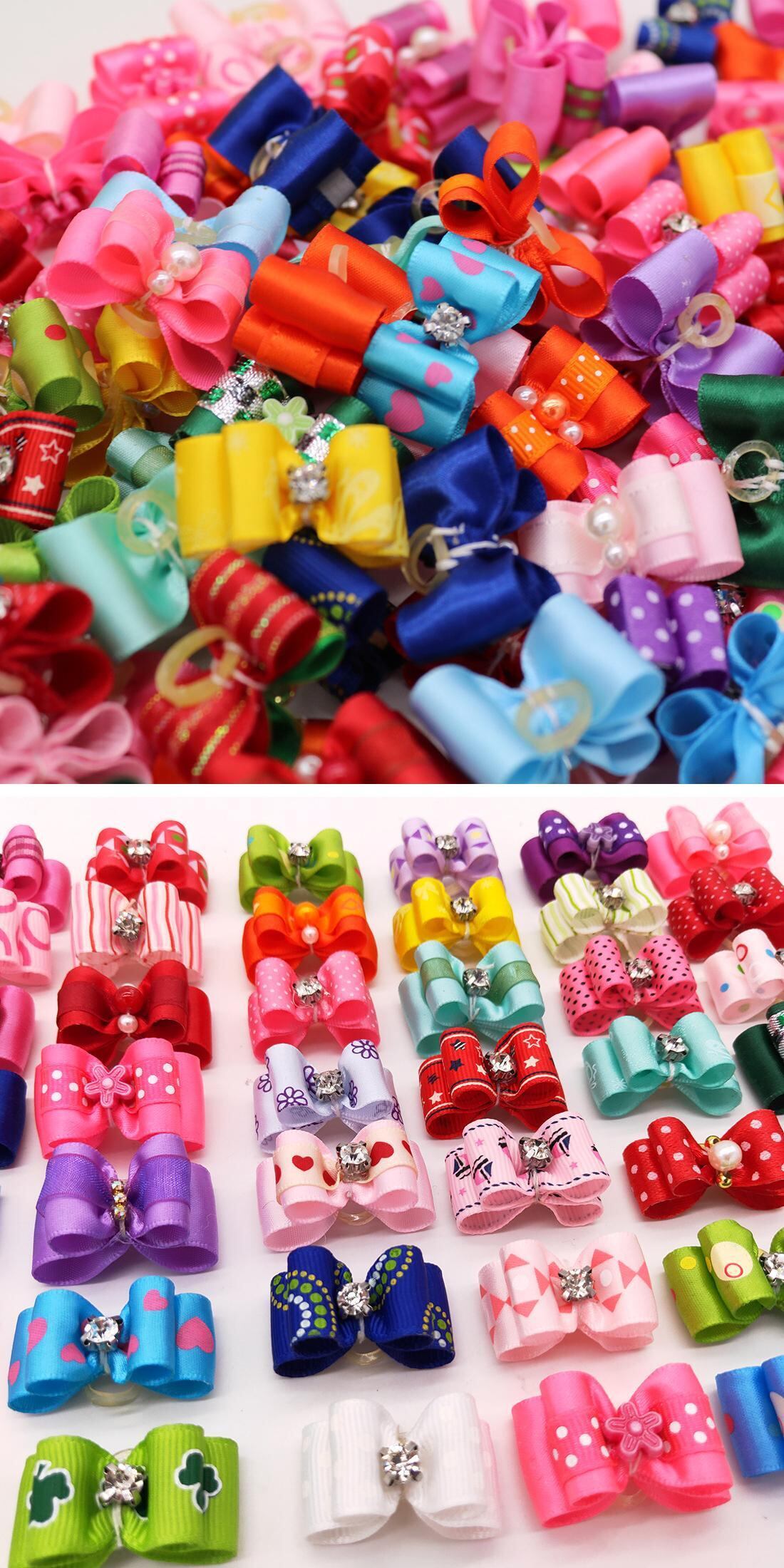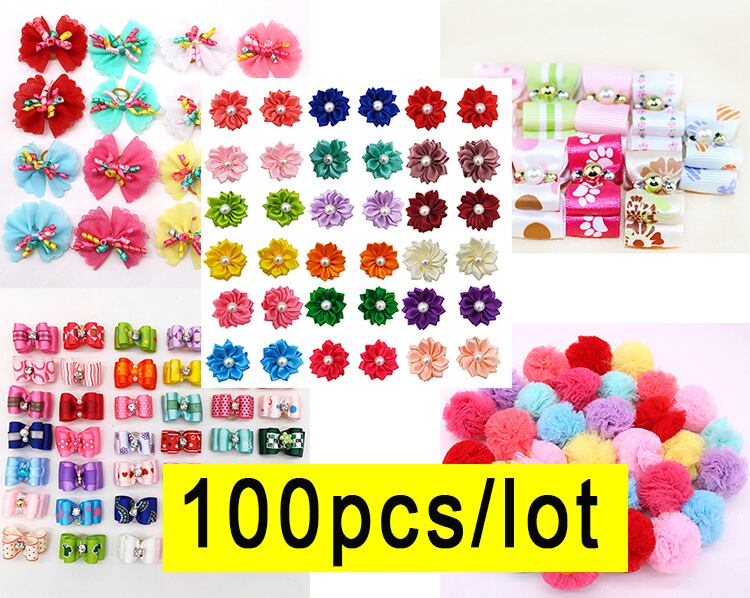 10 ピース/ロット小さなペット犬リボンボールグルーミングアクセサリー子犬弓弾性ゴムバンドペット用品