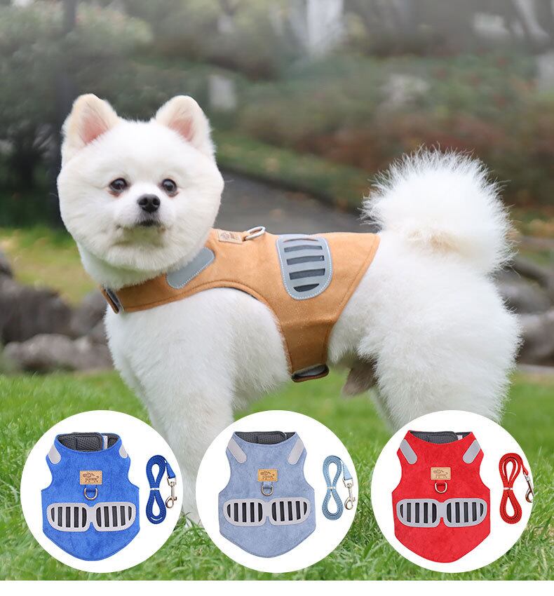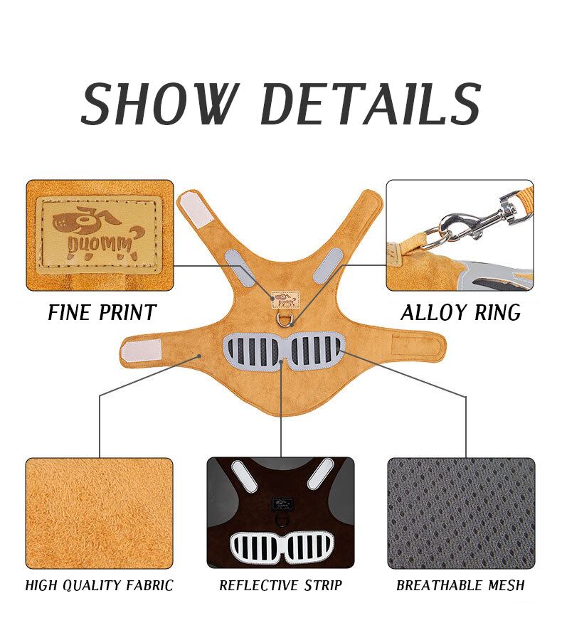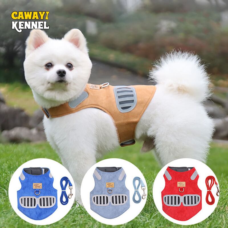 CAWAYI KENNEL スエード ペット 反射犬用ハーネス 調節可能 通気性 ハーネス 小 中 大 いたずら犬 ウォーキング ランニング
