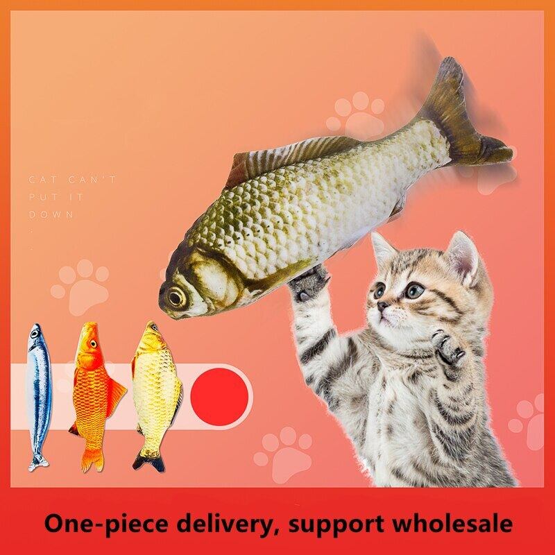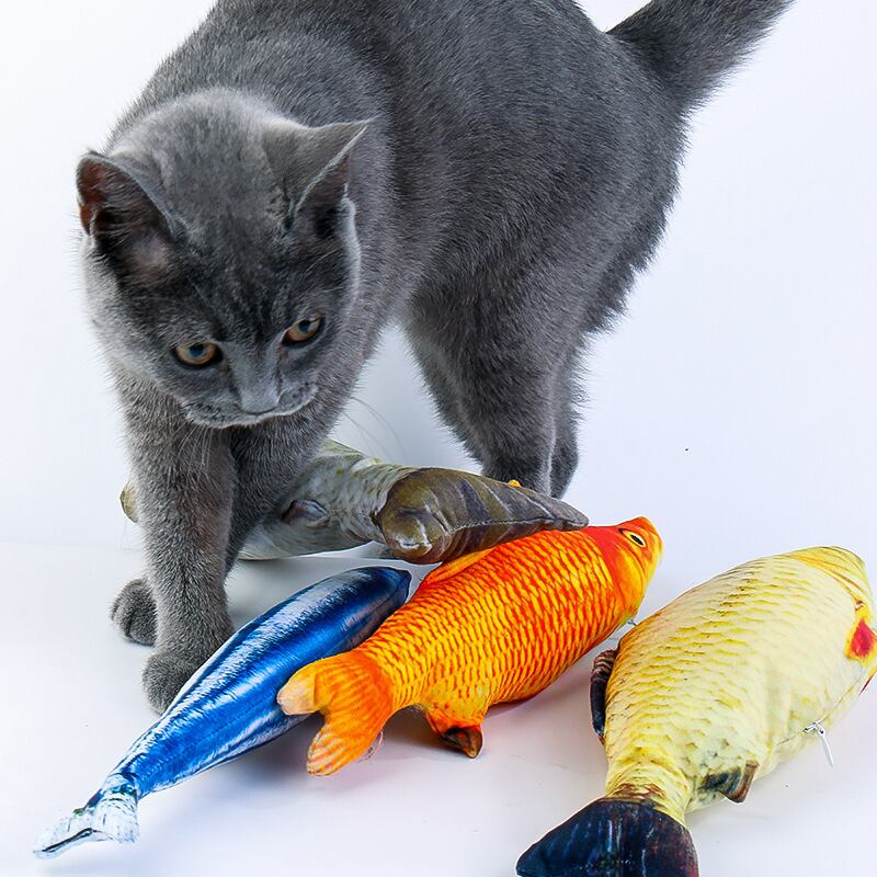 柔らかいぬいぐるみ 3D シミュレーション 猫のおもちゃ 魚、キャットニップ 魚型 噛み付き防止、噛むインタラクティブトレーニングおもちゃ ペット用品