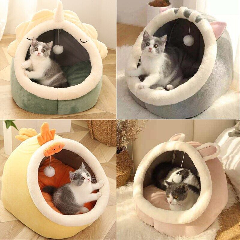 ペット猫のベッド暖かい猫ハウスソフトぬいぐるみラウンド BedsTent キャリア犬と猫バスケット枕洞窟マットペットアクセサリー用品