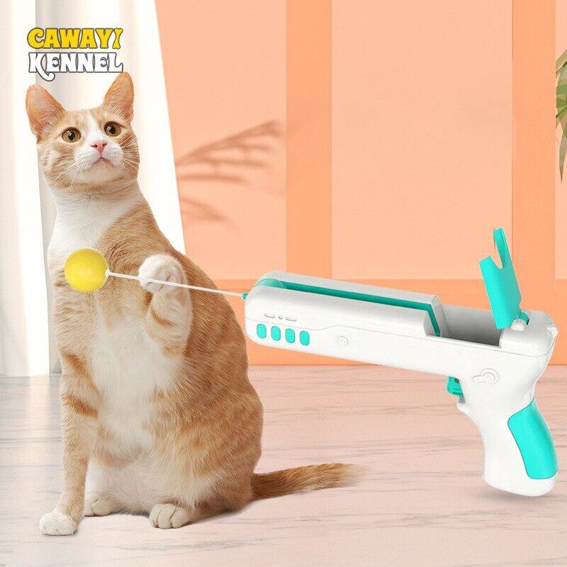 CAWAYI KENNEL 猫のインタラクティブなおもちゃ 銃のトレーニングプレイ ペットの猫のトレーニングエクササイズのおもちゃ タンブラーのおもちゃ 羽 面白い猫の野球
