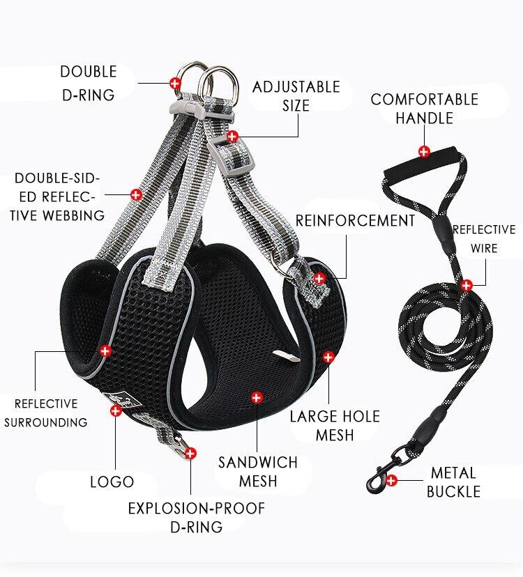 通気性ペットハーネス反射ナイロン犬調節可能な中大安全ベストアウトリードウォーキングランニングペット用品