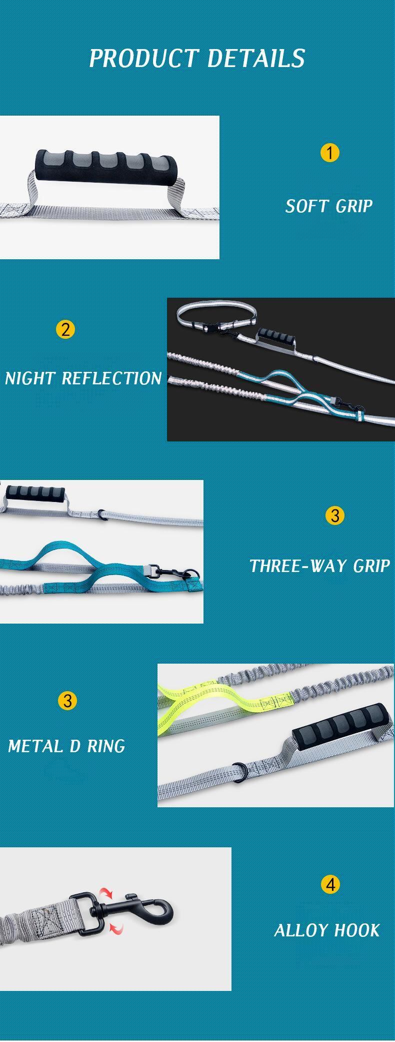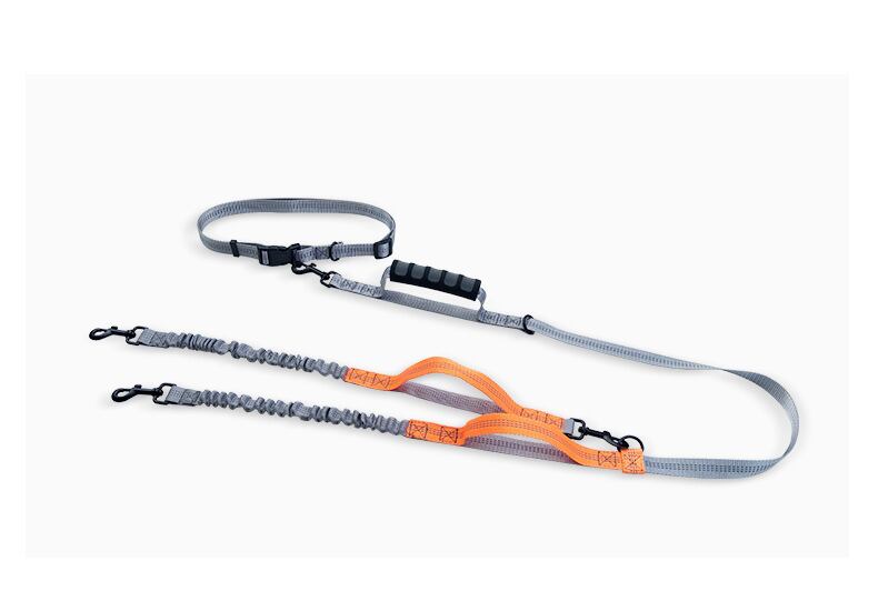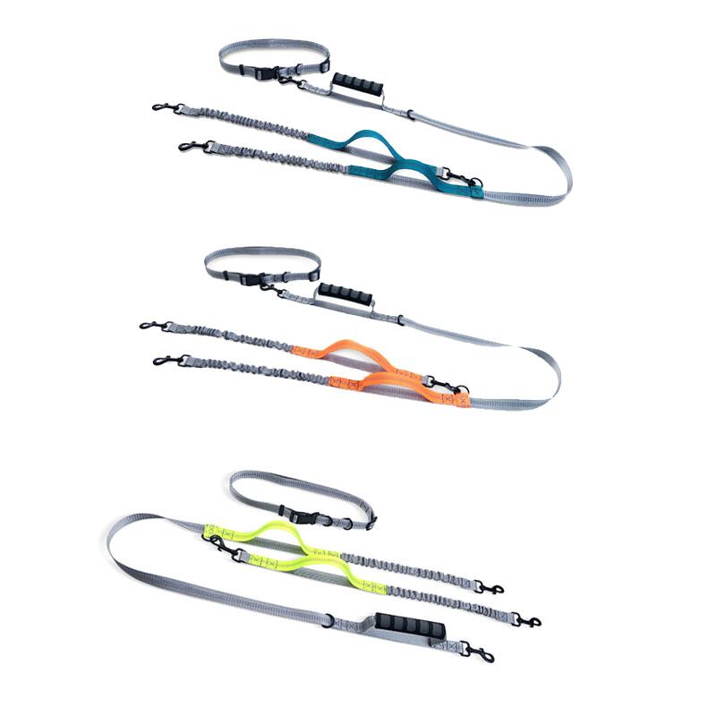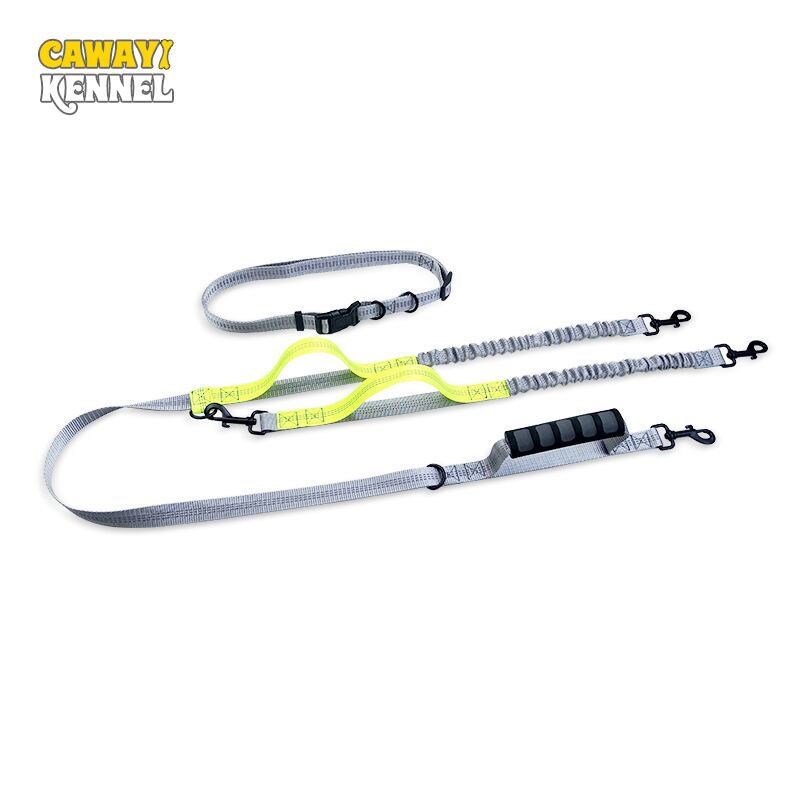 CAWAYI KENNEL 犬用リーシュ ダブルリーシュ ランニング ウォーキング 伸縮性 フリーハンド 反射ナイロン 調節可能 ペットリーシュ 大型犬